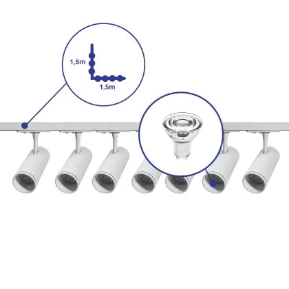 | Manufacturer Name | Complete L shaped 1-Phase Track Set White incl. 7x Spot fixture + GU10 2700K 3W Dim – 1.5 x 1.5 mete | |