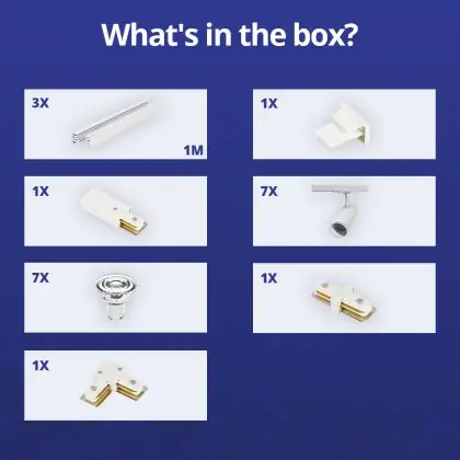 | Manufacturer Name | Complete L shaped 1-Phase Track Set White incl. 7x Spot fixture + GU10 2700K 3W Dim – 1 x 2 meters i | |