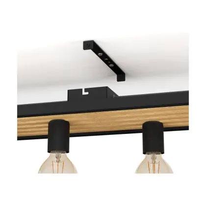 Eglo Ceiling Light Consett Steel Wood Black Brown | IP20 - Suitable for 6x E27