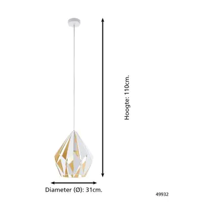 Eglo Pendant Carlton 1 Steel White Gold | IP20 - Suitable for 1x E27
