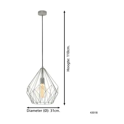 Eglo Pendant Carlton Steel Grey | IP20 - Suitable for 1x E27