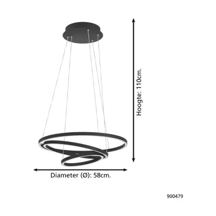 Eglo Pendant Lobinero-Z Aluminium Steel Black 40W 6100lm - 830-865 Tunable White | IP20 - Zigbee Dimmable