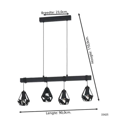 Eglo Pendant Townshend 7 Steel Wood Black | IP20 - Suitable for 4x E27