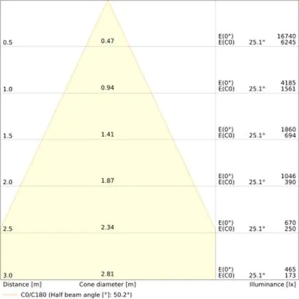 ![]() The colour code is a combination of colour rendering (CRI) and light colour (Kelvin). The first number indicates the colour rendering (1 = very poor colour rendering, 9 = maximum colour fastness). The second and third number contains the light colour. Example: the colour code 830 consists of good colour rendering (8) and warm white light (3000K). |