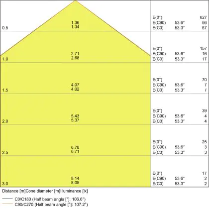 Beam angle of 120°
