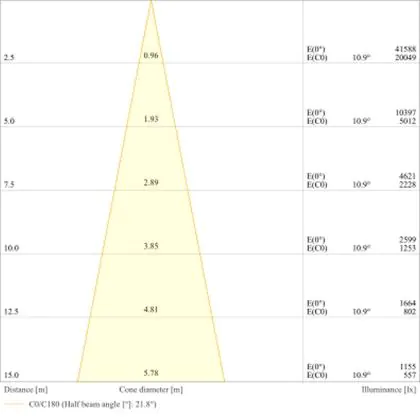 A beam angle indicates the angle of the light beam coming from a light source. The smaller the radiation angle in degrees (D), the narrower the beam angle.