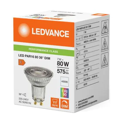Ledvance LED PAR16 GU10 Reflector 7W 575lm 36D - 940 Cool White | Best Colour Rendering - Dimmable - Replaces 80W