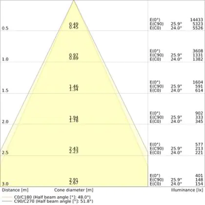 ![]() The colour code is a combination of colour rendering (CRI) and light colour (Kelvin). The first number indicates the colour rendering (1 = very poor colour rendering, 9 = maximum colour fastness). The second and third number contains the light colour. Example: the colour code 830 consists of good colour rendering (8) and warm white light (3000K). |