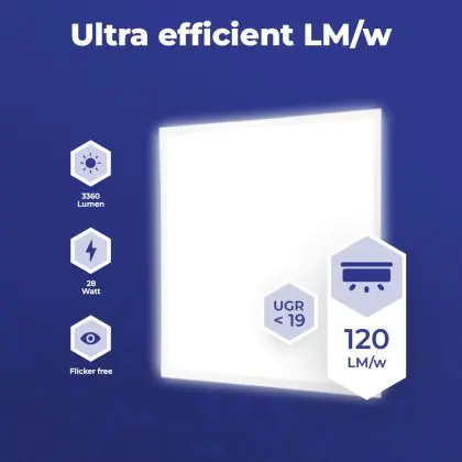 The most common sizes of LED panels are 60x60cm (square) and 30x120cm (rectangular). These are standard sizes for almost all suspended ceilings. There are also various other dimensions available, such as 20x120cm or 15x150cm.