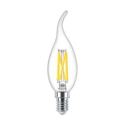 Multipack 10x Philips MASTER LED E14 Bent-tip Candle Filament Clear 3.4W 470lm - 922-927 Dim To Warm | Best Colour Rendering - Dimmable - Replaces 40W
