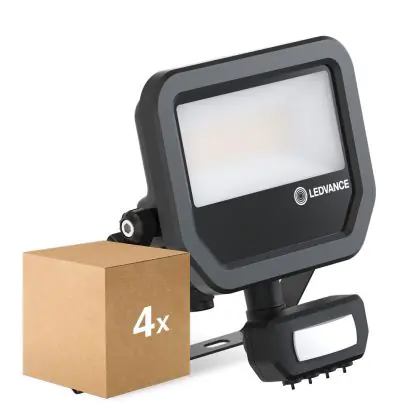 Multipack 4x Ledvance LED Floodlight Aluminium Black 17W 2400lm 100D - 840 Cool White | IP65 - Motion And Light Sensor - Symmetrical