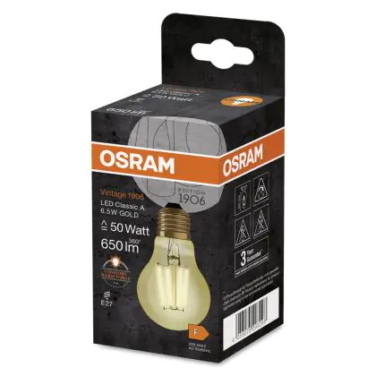 | Manufacturer Name | Vintage 1906 LED CL A FIL GOLD 50 non-dim 6,5W/824 E27 | |