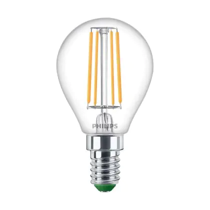 Philips Master Ultra Efficient LED E14 Pear Filament Clear 2.3W 485lm - 827 Extra Warm White | Replaces 40W