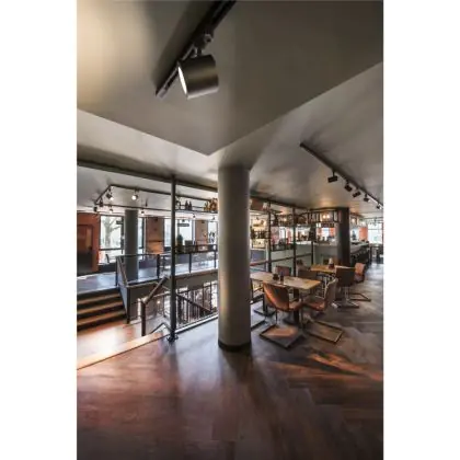 A fixture with a tiltable design makes it possible to direct the lighting specifically at an object or surface. This can play a particularly important role in shops (putting a new collection in the spotlight) or galleries (accentuating works of art). It can also influence the purchasing behaviour or interpretation of visitors.