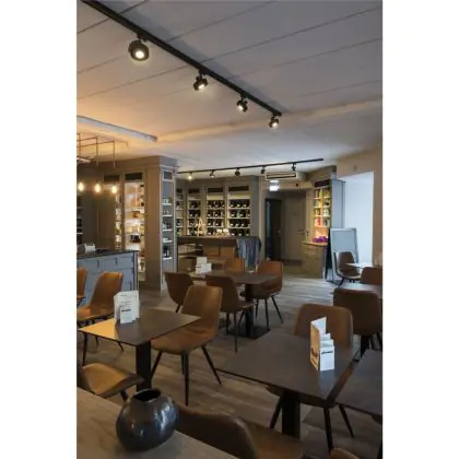 A fixture with a tiltable design makes it possible to direct the lighting specifically at an object or surface. This can play a particularly important role in shops (putting a new collection in the spotlight) or galleries (accentuating works of art). It can also influence the purchasing behaviour or interpretation of visitors.